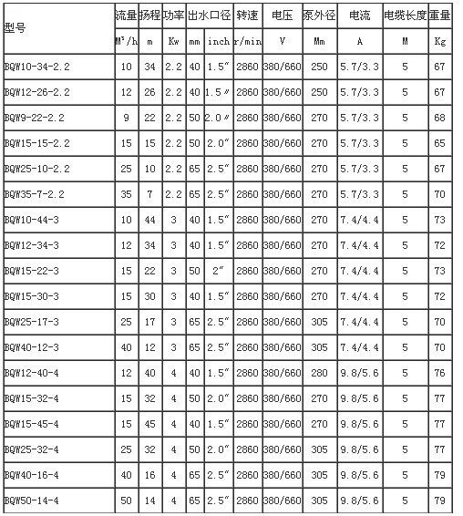 BQW防爆(bao)礦(kuang)用(yong)潛水排污泵技術參數