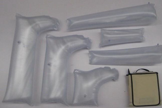 充氣夾板是有PVC材料制成,防火,表面韌性較強,不易被損壞,在使用中如果臟了可 放心的放在水中洗滌不要擔心會壞掉,充氣夾板在真空的狀態下可以發揮像石膏一樣的作用把傷員的骨折或者脫臼的部位個固定住保持70個小時以上,軀體固定器可以按照傷員的各種形態的變化,也可以與X光、CT、MRI檢查配套。
